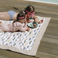 Praktiline piknikumatt, mida on väga vaja linnast väljas põgenemiseks, rannas lõbutsemiseks ja perepiknikuks, samuti mängumatt teie lapsele õues viibimiseks. Matt on varustatud lukuga taskuga, mis sobib ideaalselt võtmete, raha või rahakoti hoidmiseks. Ühele küljele on äärtesse õmmeldud paelad teki mugavaks voltimiseks, teine, pikem pael aga teeb kaasaskandmise lihtsaks. Piknik on alt kaitstud veekindla kangaga, mis muudab selle kaitstuks igasuguse niiske pinna eest.